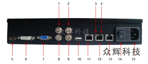 | 9 | 視頻2輸出,BNC接口。 |